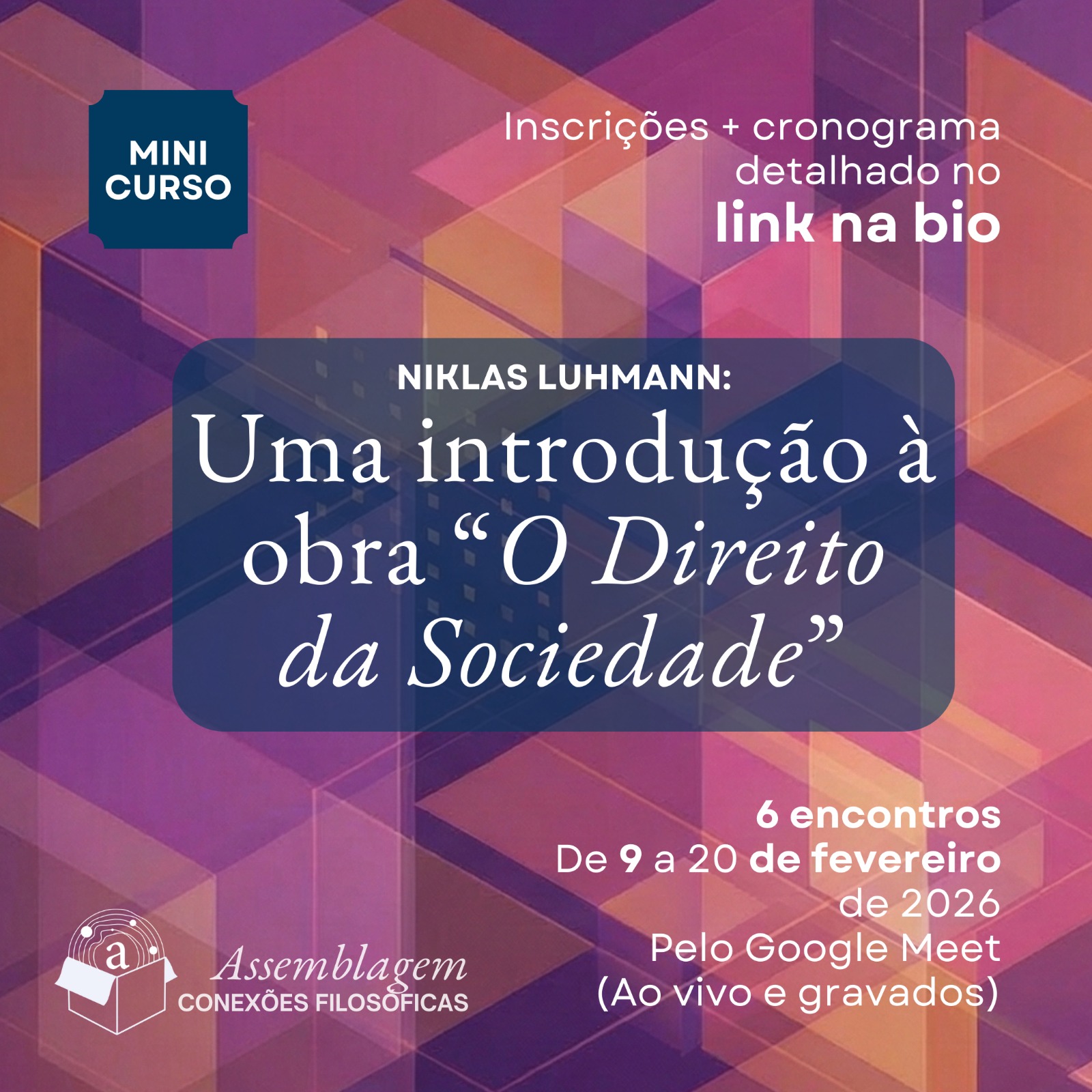 Estudo dirigido e da obra de Niklas Luhmann "O Direito da Sociedade" (1993), texto central da teoria dos sistemas sociais com aplicação importante na filosofia do Direito.
